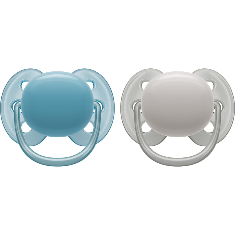 Suzeta PHILIPS AVENT Ultra Soft SCF091/17, 6-18 luni, 2 buc, gri-albastru