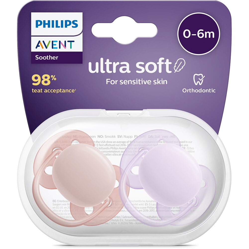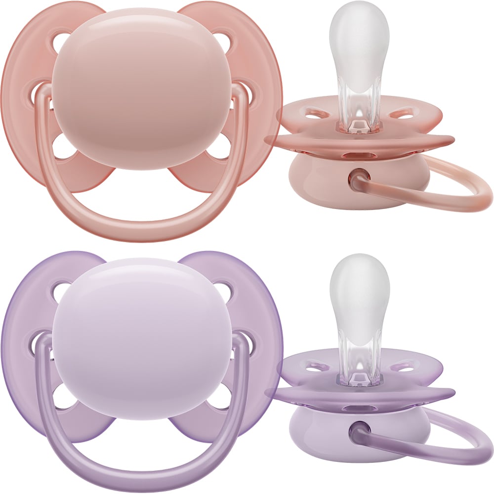 Suzeta PHILIPS AVENT Ultra Soft SCF091/31, 0-6 luni, 2 buc, roz-mov
