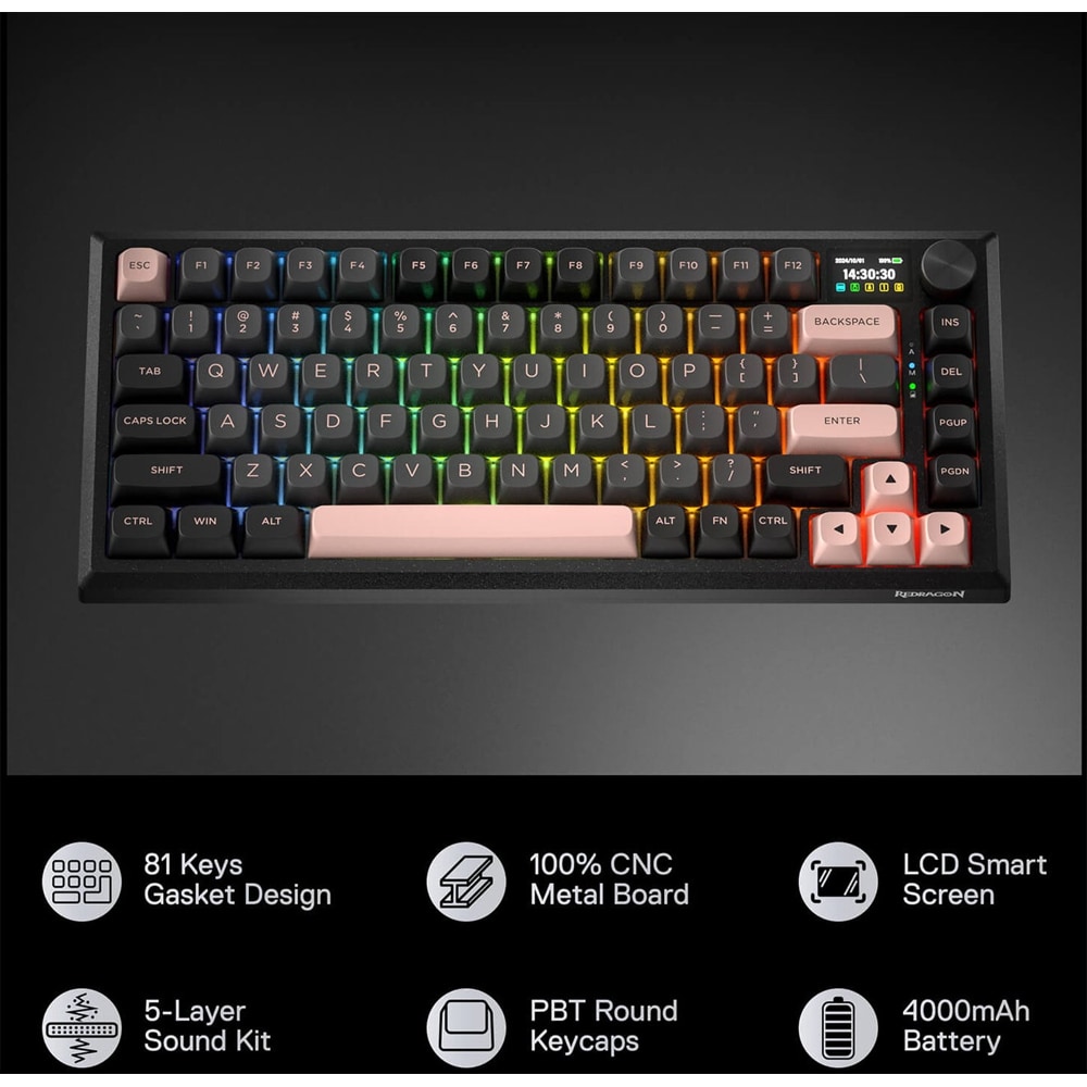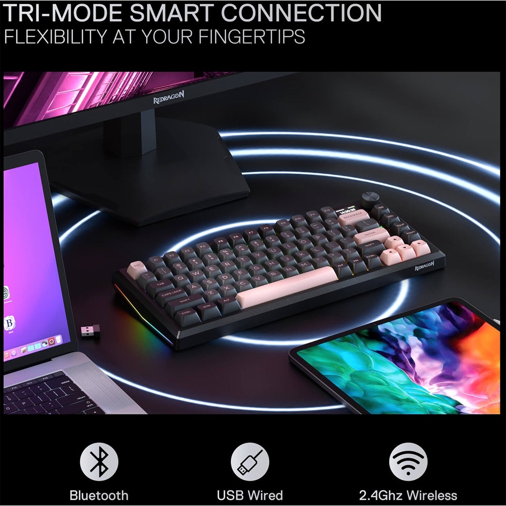 Tastatura Gaming Wireless mecanica REDRAGON Eclipse K720 Pro, Bluetooth, USB, Layout US, negru