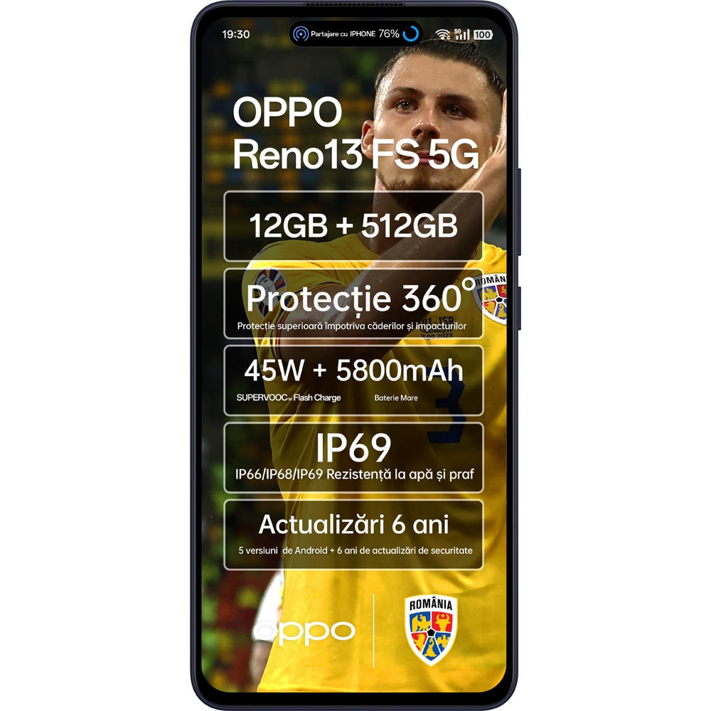 Telefon OPPO Reno13 FS 5G, 512GB, 12GB RAM, Dual SIM, Luminous Blue