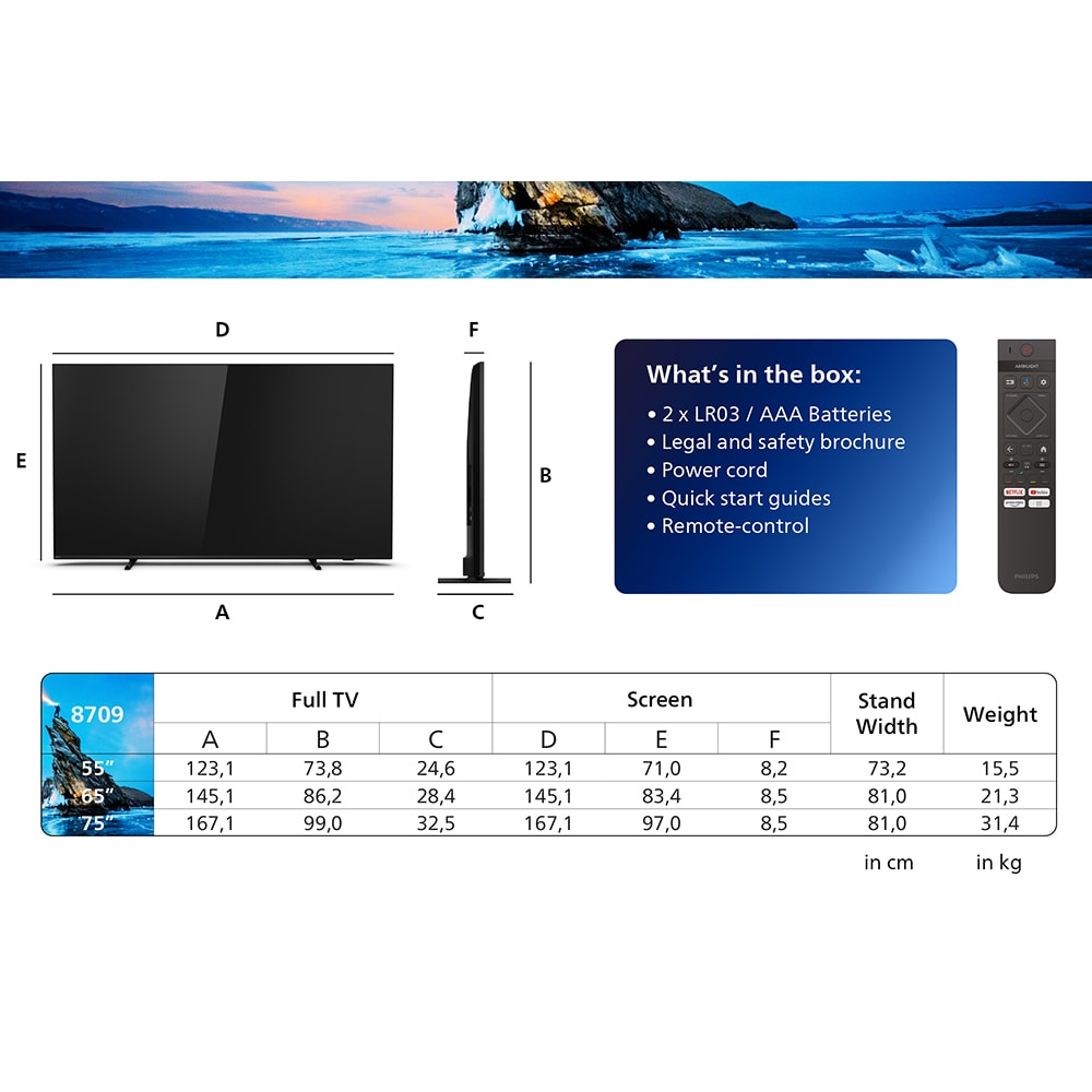 Televizor MiniLED Smart PHILIPS 55PML8709, Ultra HD 4K, 139cm