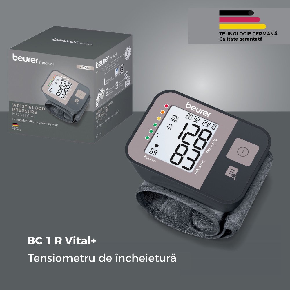 Tensiometru digital de incheietura BEURER BC1R, argintiu inchis