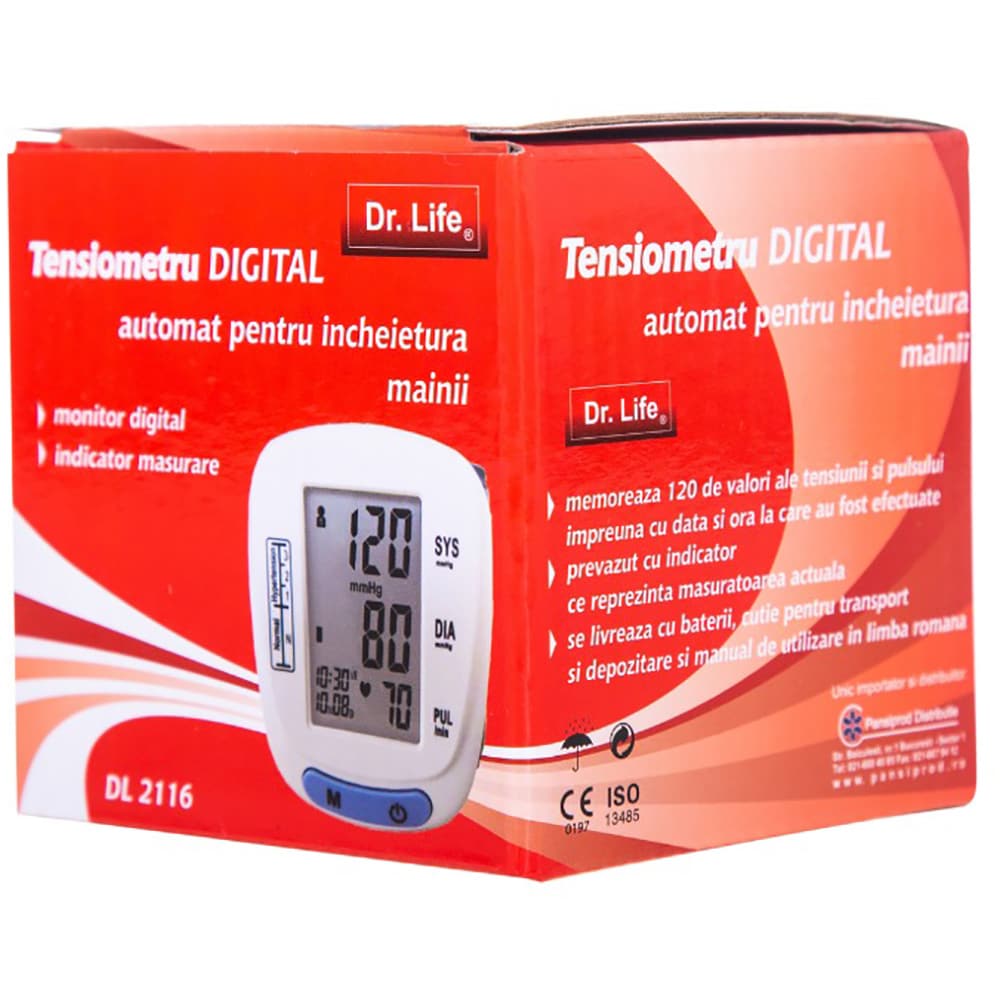 Tensiometru digital de incheietura DR. LIFE DL2116, 120 memorii, alb