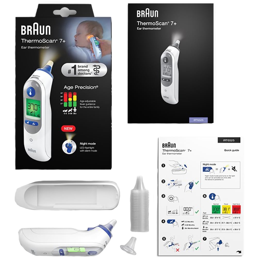 Termometru auricular BRAUN Thermoscan 7+ TOW018629, night mode, alb-albastru