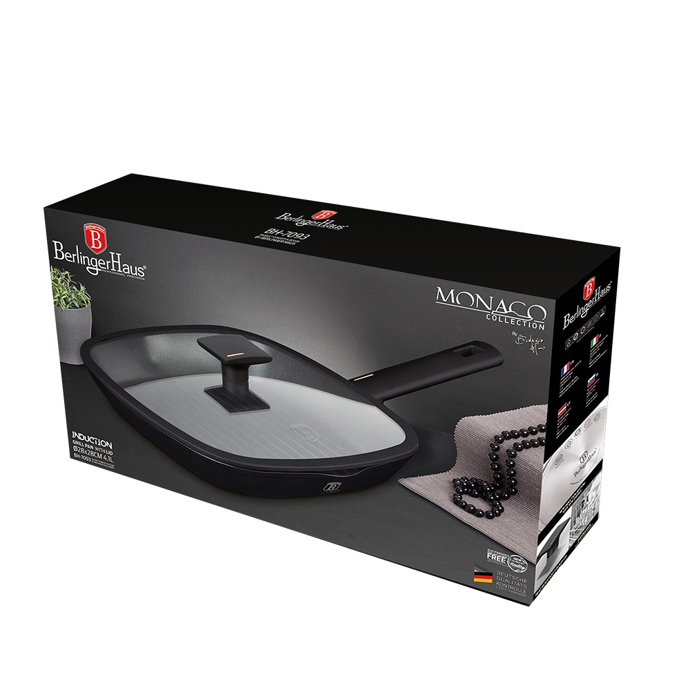 Tigaie Grill BERLINGER HAUS Monaco Collection BH7093, 2.1l, 28x28cm, aluminiu, negru