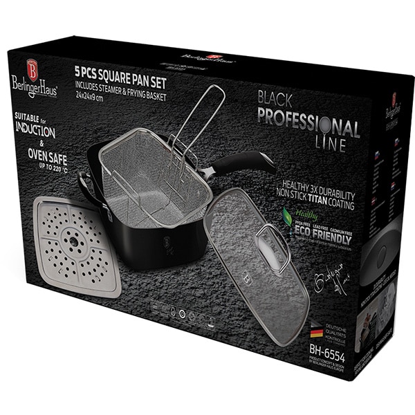 Tigaie multifunctionala 4in1 BERLINGER HAUS BH/6554, 24cm, aluminiu, negru
