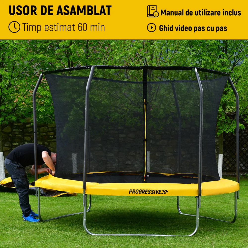 Trambulina PROGRESSIVE TRB140, D 152cm, greutate suportata 100kg, plasa protectie, negru