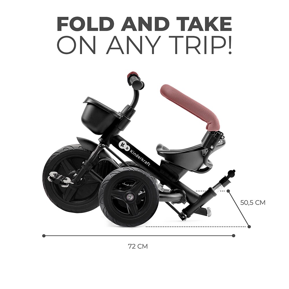 Tricicleta KINDERKRAFT Aveo KRAVEO00PNK, 9 luni+, roz-negru
