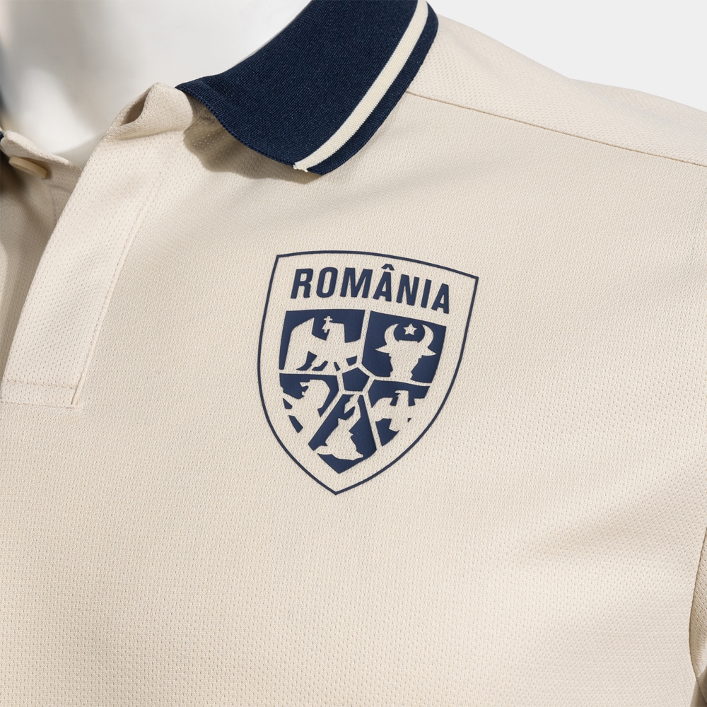 Tricou fotbal de prezentare pentru copii JOMA Echipa Nationala de Fotbal a Romaniei 2025, marimea 4XS, crem