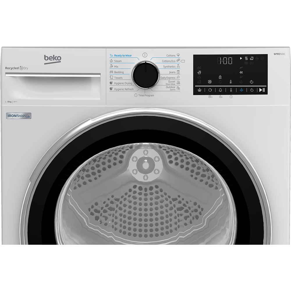 Uscator de rufe BEKO B5T68233, Pompa de caldura, 8kg, 15 programe, Clasa E, alb