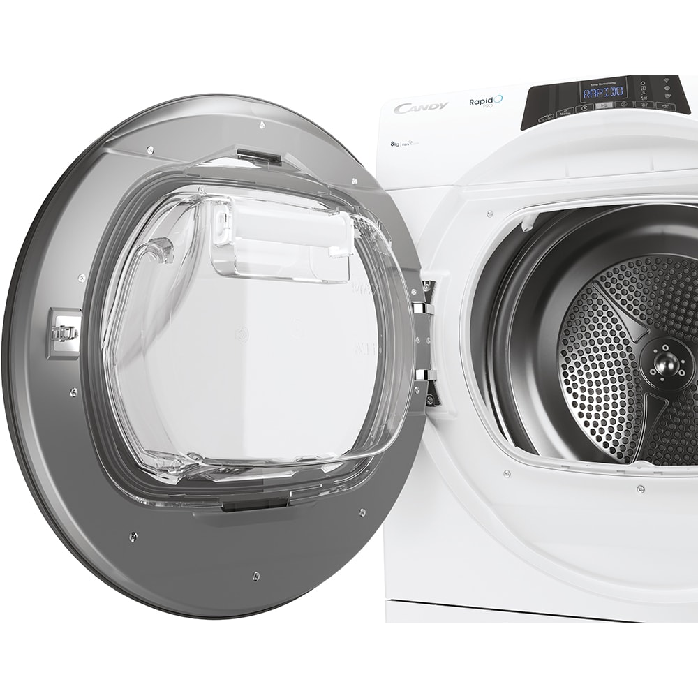 Uscator de rufe CANDY Rapido Pro RPE H8A2TRE-S, Pompa de caldura, 8 kg, 14 programe, Clasa E, Wi-Fi, alb