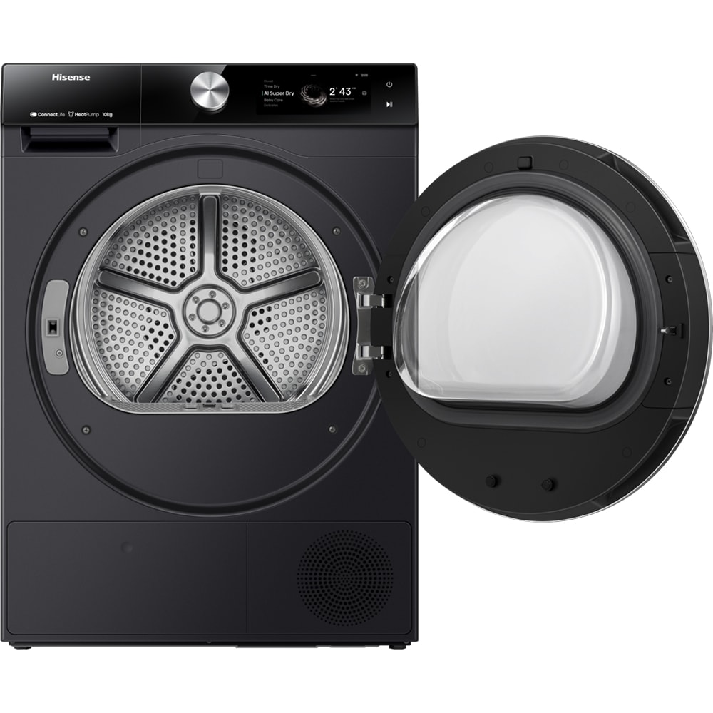 Uscator de rufe HISENSE DH7S107BB, Pompa de caldura, 10 kg, 20 programe, Clasa A+++, Wi-Fi, negru