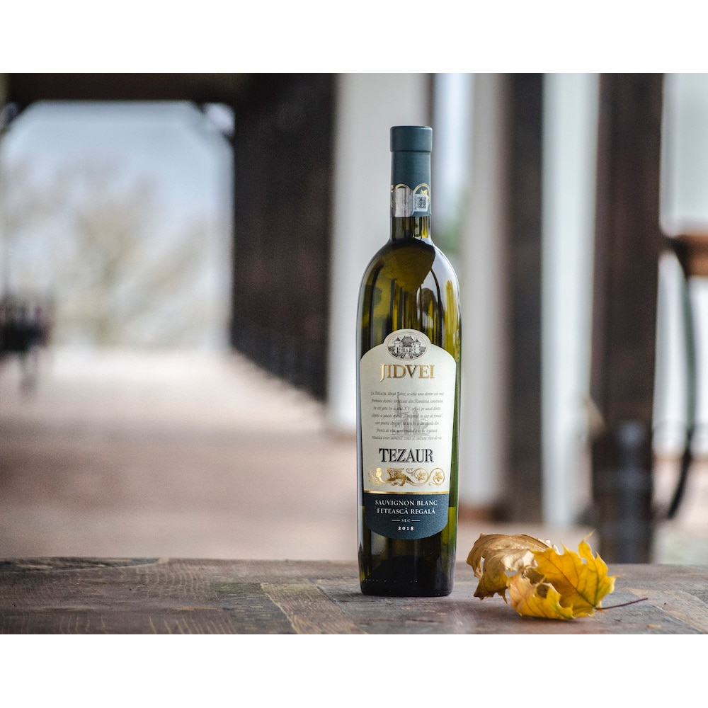Vin alb sec Jidvei Tezaur Sauvignon Blanc si Feteasca Regala 2022, 0.75L, bax 6 sticle