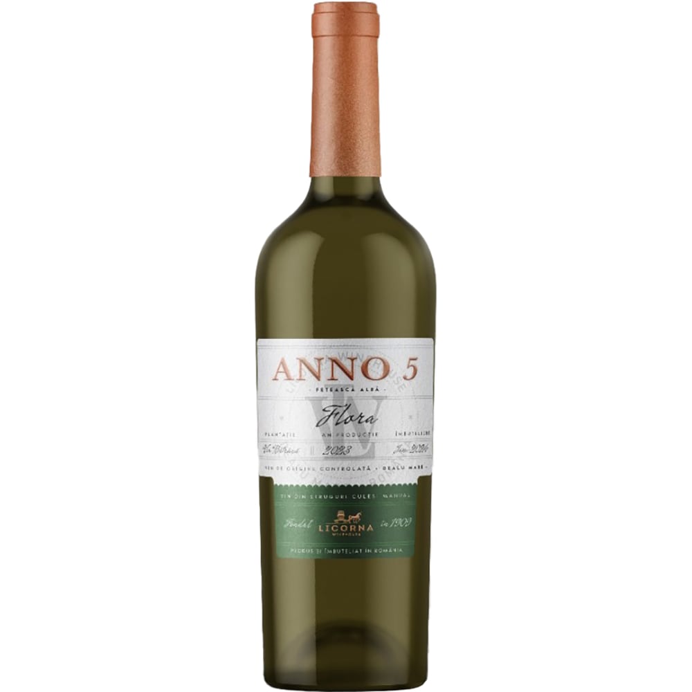 Vin alb sec Licorna Anno 5 Feteasca Alba Flora, 0.75L