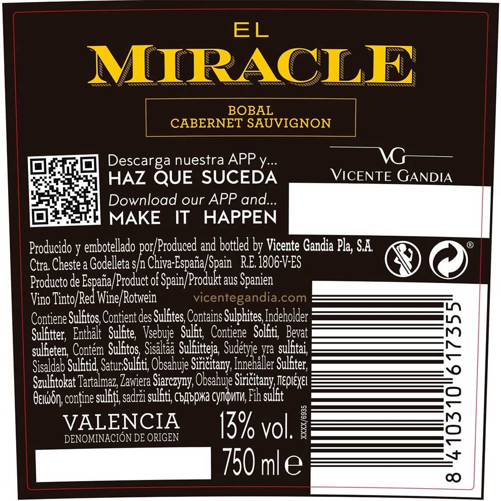 Vin rosu sec VICENTE GANDIA El Miracle 2019, 0.75L