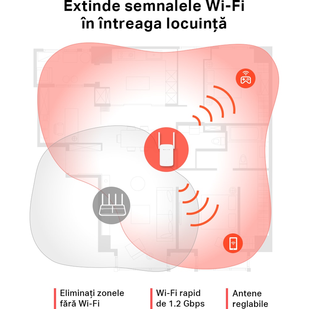 Wireless Range Extender MERCUSYS ME30 AC1200, Dual Band 300 + 867 Mbps, alb
