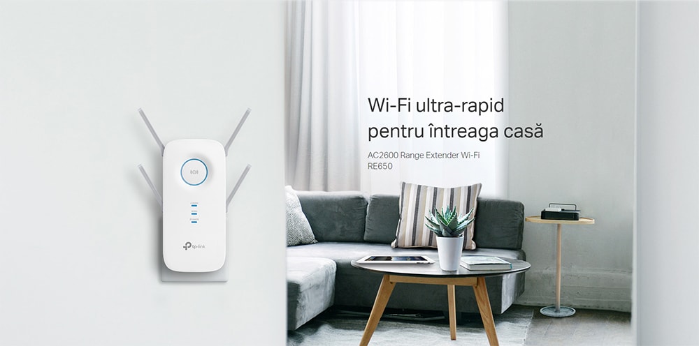 Wireless Range Extender TP-LINK RE650, Dual Band 800 + 1733 Mbps, alb