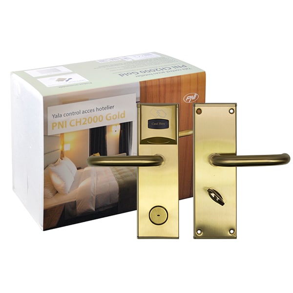 Yala control acces hotelier PNI CH2000L, cu cititor de card, deschidere stanga, auriu